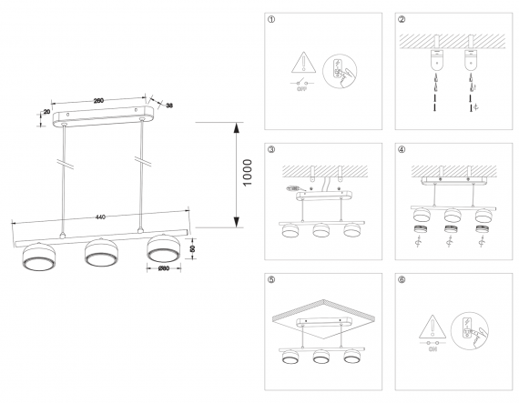 Ambrella TN71032 Светильник подвесной GX53/3 max 12W 440*80*1100