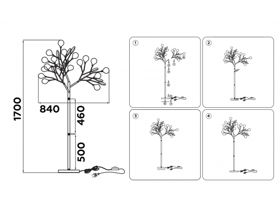 Напольный телескопический светильник со сменной лампой TR3030/27 BK/SM черный/дымчатый G4/27 max 20W D840*1700 (лампы LED G4 1.5W 4200K в комплекте)
