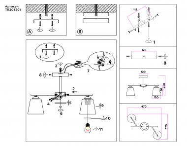 Ambrella TR303201 Светильник подвесной E27*2 max 60W 470*370*260