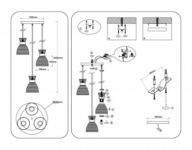 Ambrella TR3402 Светильник подвесной E27/3 max 60W D345*1000