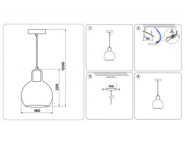Подвесной светильник TR3517 CH/TI хром/янтарь E27 max 40W D180*1200