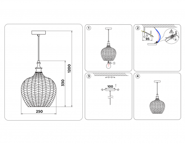 Подвесной светильник TR3531 SB/TI бронза/янтарь E27 max 40W D250*1200