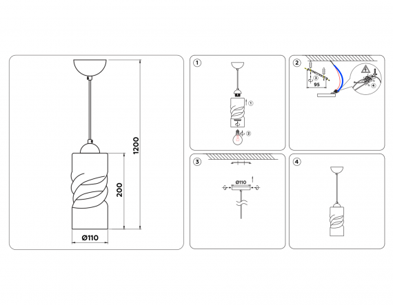Подвесной светильник TR3555 BK/TI черный/янтарь E27 max 40W D110*1200