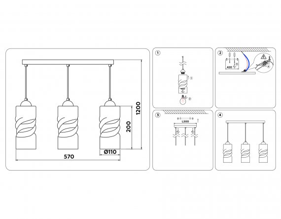 Подвесной светильник TR3556/3 BK/TI черный/янтарь E27 max 40W 570*110*1200