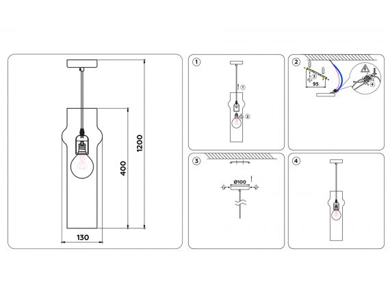 Подвесной светильник TR3560 BK/TI черный/янтарь E27 max 40W D130*1200