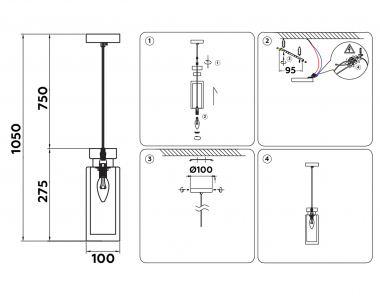 Ambrella TR3571 Подвесной светильник со сменной лампой E14 max 40W D100*1050