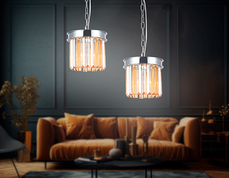 Подвесной светильник с хрусталем TR5102 CH/TI хром/янтарь E14 max 40W D200*575