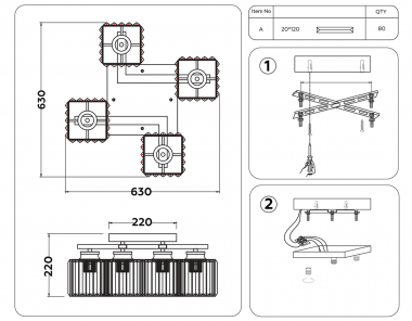 Ambrella TR5213 Потолочный светильник E27/4 max 40W 630*630*220