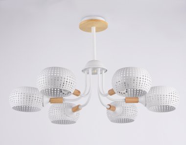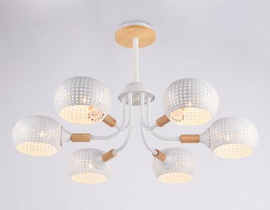 Светильник подвесной TR80166/6 WH/LWD белый/светлое дерево E14/6 max 40W D690*370