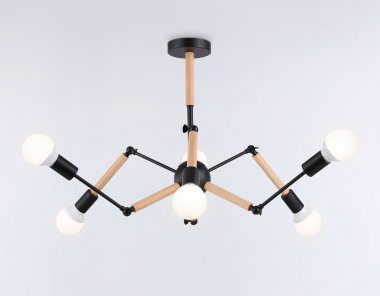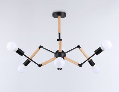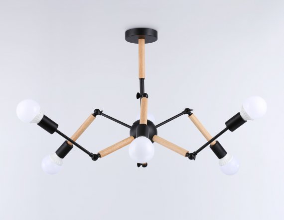 Подвесной светильник в стиле лофт TR80488/6 BK/LW черный/светлое дерево E27/6 max 60W D930*510