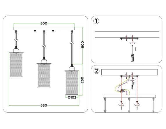 Ambrella TR8163 Подвесной светильник в стиле лофт E27*3 max 40W 580*102*1060