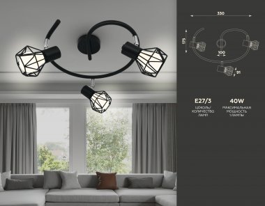 Настенно-потолочный спот в стиле лофт TR8624/3 BK/CH черный/хром E27*3 max 40W D330*175
