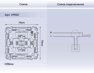 Ambrella VM101 Механизм 1-клавишного выключателя 10A-250V QUANT
