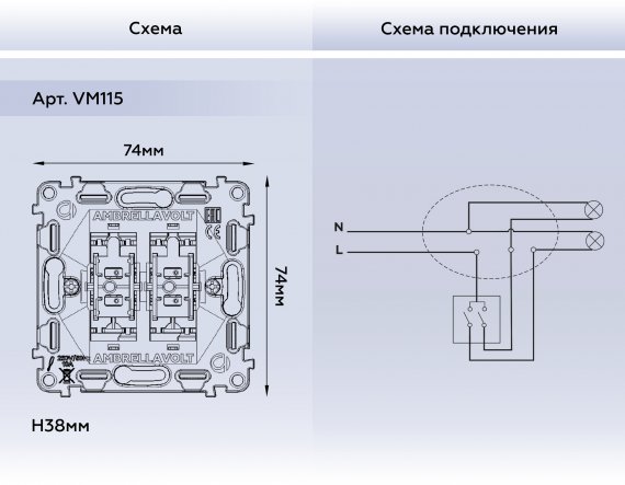 Ambrella VM115 Механизм 2-клавишного выключателя 10A-250V