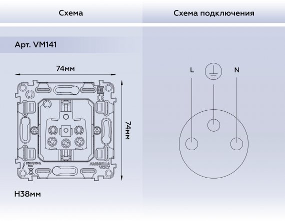 Ambrella VM141 Механизм электрической розетки 16A-250V 2P+E