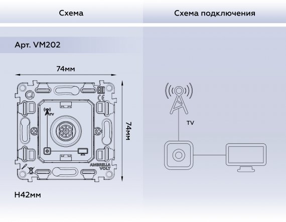Ambrella VM202 Механизм TV розетки оконечной 50-870 MHz 1dB