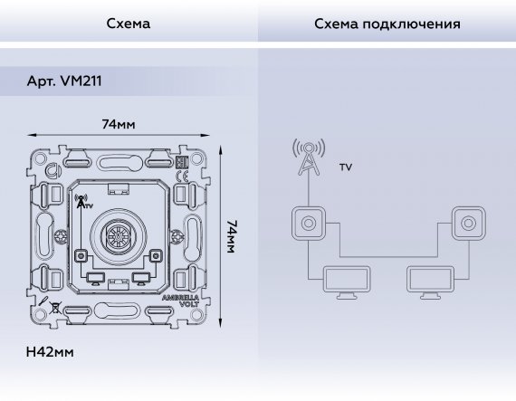 Ambrella VM211 Механизм TV розетки проходной 5-1000 MHz 4dB