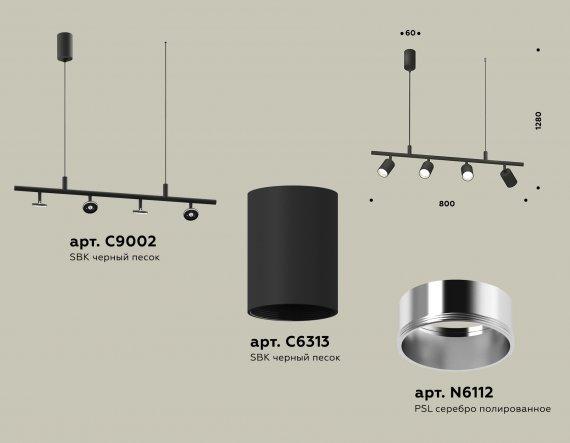 Комплект подвесного поворотного светильника XB9002130/4 SBK/PSL черный песок/серебро полированное MR16 GU5.3 (С9002, С6313, N6112)