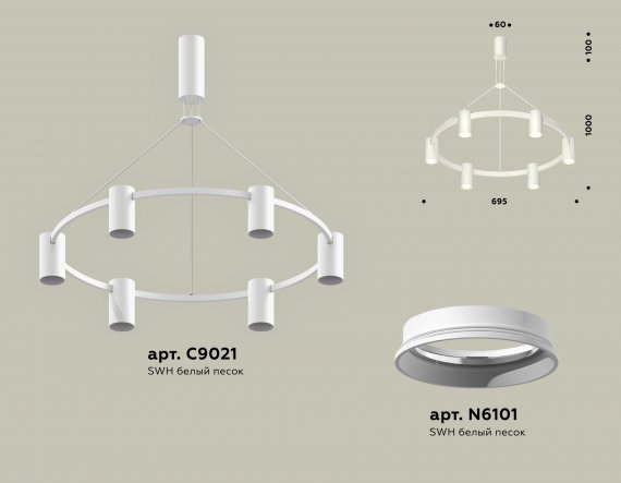Комплект подвесного светильника XB9021100/6 SWH белый песок MR16 GU5.3 (С9021, N6101)