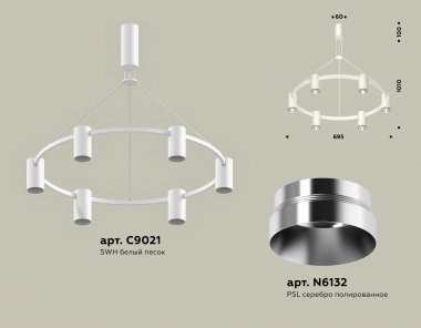 Комплект подвесного светильника XB9021151/6 SWH/PSL белый песок/серебро полированное MR16 GU5.3 (С9021, N6132)