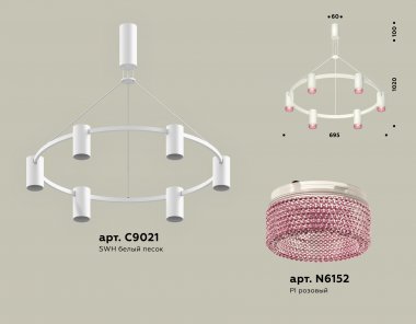 Комплект подвесного светильника с композитным хрусталем XB9021201/6 SWH/PI белый песок/розовый MR16 GU5.3 (С9021, N6152)