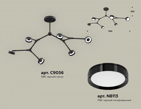 Комплект подвесного поворотного светильника XB9056150/6 SBK/PBK черный песок/черный полированный GX53 (C9056, N8113)