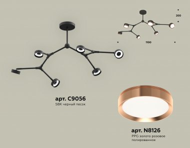 Комплект подвесного поворотного светильника XB9056153/6 SBK/PPG черный песок/золото розовое полированное GX53 (C9056, N8126)