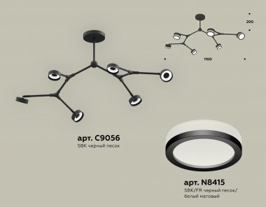 Комплект подвесного поворотного светильника с акрилом XB9056200/6 SBK/FR черный песок/белый матовый GX53 (C9056, N8415)
