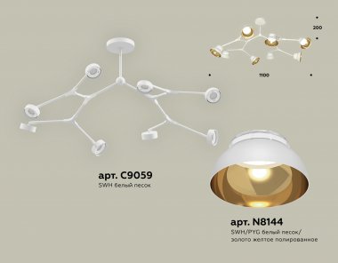 Комплект подвесного поворотного светильника XB9059101/8 SWH/PYG/CL белый песок/золото желтое полированное/прозрачный GX53 (C9059, N8144)