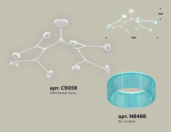 Комплект подвесного поворотного светильника с композитным хрусталем XB9059202/8 SWH/BL белый песок/голубой GX53 (C9059, N8488)