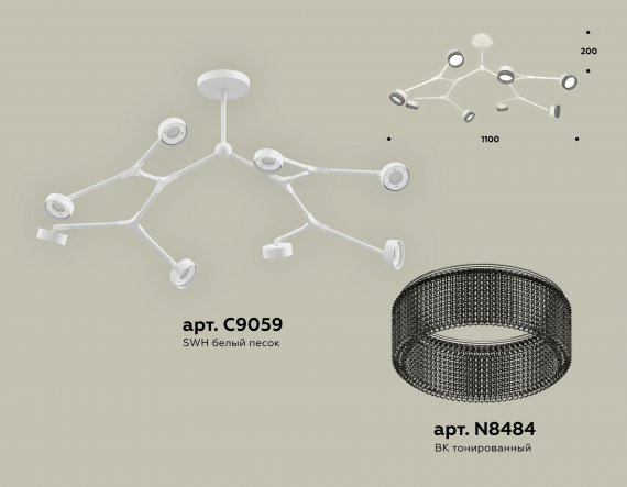 Комплект подвесного поворотного светильника с композитным хрусталем XB9059203/8 SWH/BK белый песок/тонированный GX53 (C9059, N8484)