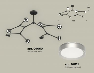 Комплект подвесного поворотного светильника XB9060151/8 SBK/MCH черный песок/хром матовый GX53 (C9060, N8121)