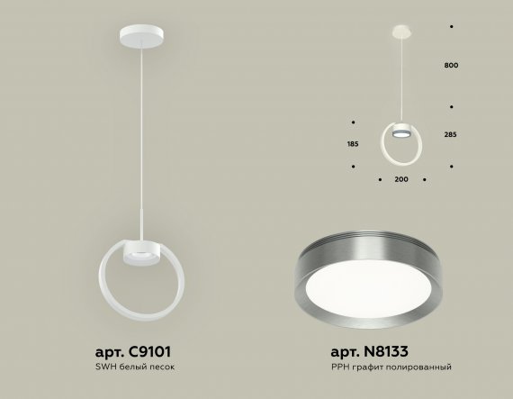 Комплект подвесного светильника XB9101102 SWH/PPH белый песок/графит полированный GX53 (C9101, N8133)