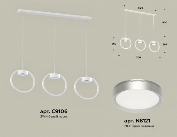 Комплект подвесного светильника XB9106101/3 SWH/MCH белый песок/хром матовый GX53 (C9106, N8121)