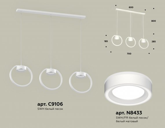 Комплект подвесного светильника с акрилом XB9106151/3 SWH/FR белый песок/белый матовый GX53 (C9106, N8433)