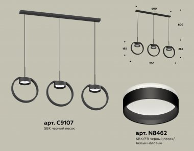 Комплект подвесного светильника с акрилом XB9107152/3 SBK/FR черный песок/белый матовый GX53 (C9107, N8462)