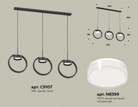 Комплект подвесного светильника с акрилом XB9107156/3 SBK/FR/CL черный песок/белый матовый/прозрачный GX53 (C9107, N8399)