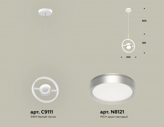 Комплект подвесного поворотного светильника XB9111101 SWH/MCH белый песок/хром матовый GX53 (C9111, N8121)
