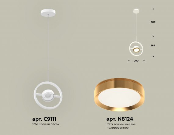 Комплект подвесного поворотного светильника XB9111103 SWH/PYG белый песок/золото желтое полированное GX53 (C9111, N8124)