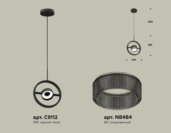 Комплект подвесного поворотного светильника с композитным хрусталем XB9112150 SBK/BK черный песок/тонированный GX53 (C9112, N8484)