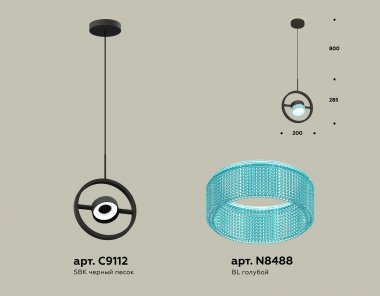 Комплект подвесного поворотного светильника с композитным хрусталем XB9112151 SBK/BL черный песок/голубой GX53 (C9112, N8488)