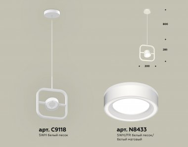 Комплект подвесного поворотного светильника с акрилом XB9118151 SWH/FR белый песок/белый матовый GX53 (C9118, N8433)