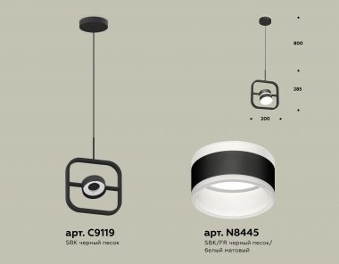 Комплект подвесного поворотного светильника с акрилом XB9119153 SBK/FR черный песок/белый матовый GX53 (C9119, N8445)