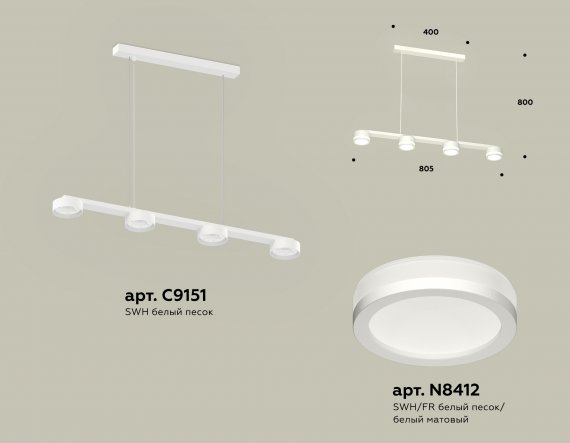 Комплект подвесного светильника с акрилом XB9151200/4 SWH/FR белый песок/белый матовый GX53 (C9151, N8412)