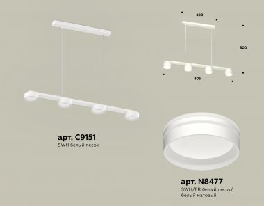 Комплект подвесного светильника с акрилом XB9151204/4 SWH/FR белый песок/белый матовый GX53 (C9151, N8477)