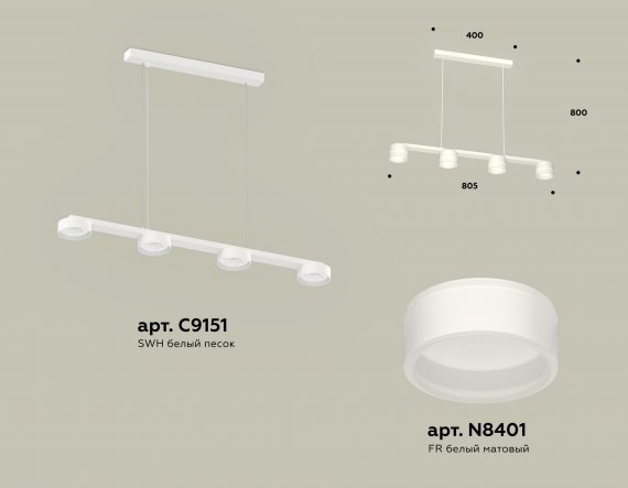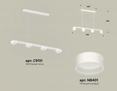 Комплект подвесного светильника с акрилом XB9151205/4 SWH/FR белый песок/белый матовый GX53 (C9151, N8401)