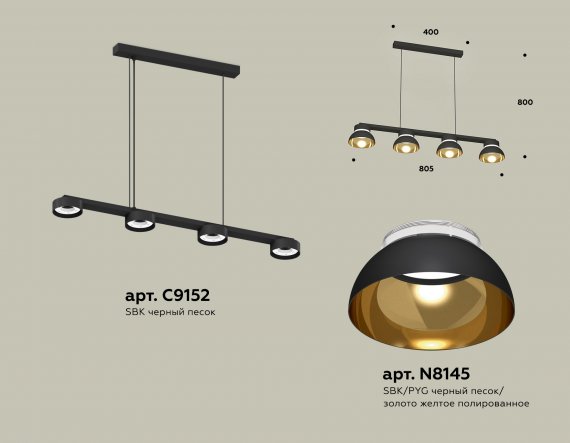 Комплект подвесного светильника XB9152101/4 SBK/PYG/CL черный песок/золото желтое полированное/прозрачный GX53 (C9152, N8145)