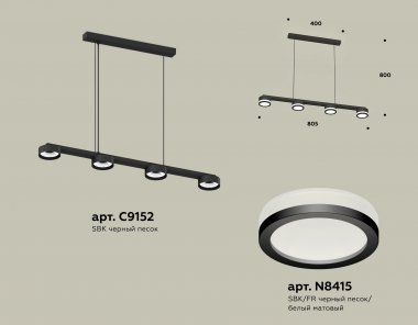 Комплект подвесного светильника с акрилом XB9152200/4 SBK/FR черный песок/белый матовый GX53 (C9152, N8415)