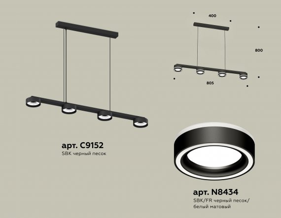 Комплект подвесного светильника с акрилом XB9152201/4 SBK/FR черный песок/белый матовый GX53 (C9152, N8434)