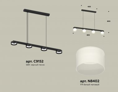 Комплект подвесного светильника с акрилом XB9152205/4 SBK/FR черный песок/белый матовый GX53 (C9152, N8402)